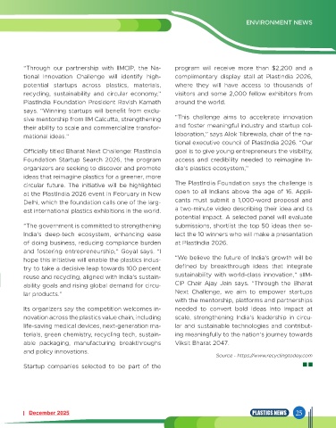 circular future. The initiative will be highlighted The PlastIndia Foundation says the challenge is