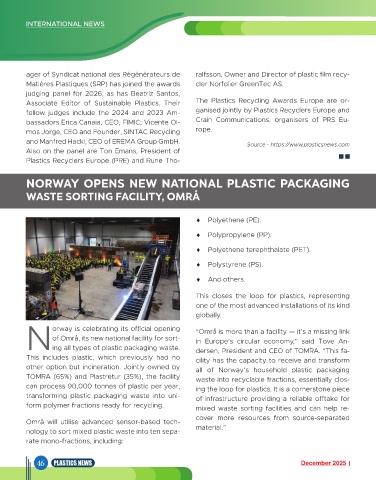 Ning all types of plastic packaging waste. dersen, President and CEO of TOMRA. “This fa-