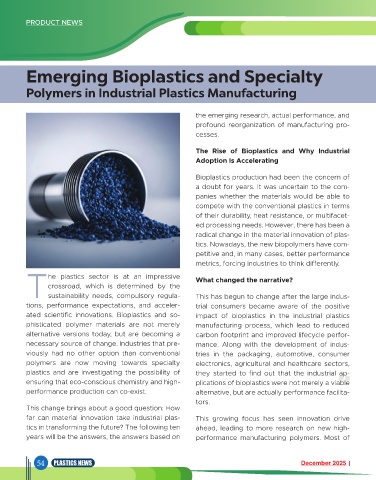 ated scientific innovations. Bioplastics and so- impact of bioplastics in the industrial plastics