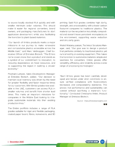 for our customers. With Embio grades now avail- bio-based, and compostability standards. This