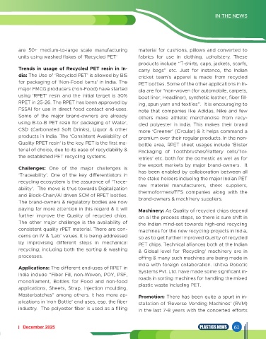Trends in usage of Recycled PET resin in In- carry bags” etc. Just for instance, the Indian