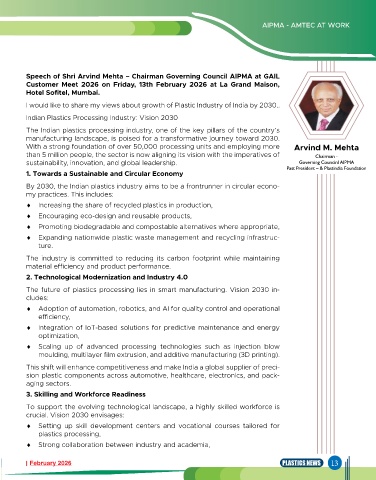 Speech of Shri Arvind Mehta – Chairman Governing Council AIPMA at GAIL