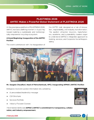 At the prestigious platform of PLASTINDIA 2026, the AMTEC stall, designed as a hub of innova-