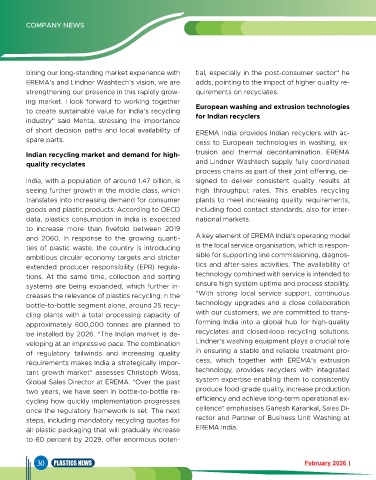 and 2060. In response to the growing quanti- A key element of EREMA India's operating model