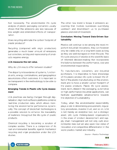 Emerging Trends in Plastic Life Cycle Assess- ment, be it utilized in the packaging, automotive