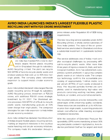 of Indias largest flexible plastic recycling service, sponsibility (EPR) norms mandating at least 30%