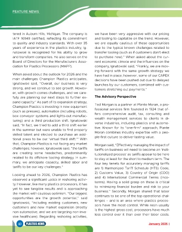 Champion Plastics is investing in new equipment Ted Morgan is a partner at Plante Moran, a pro-