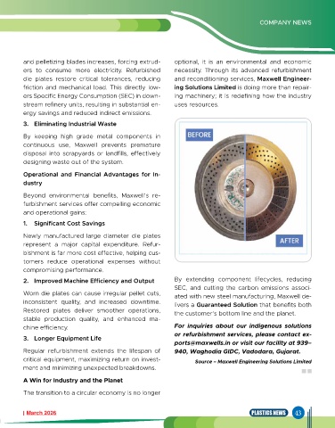 Worn die plates can cause irregular pellet cuts, ated with new steel manufacturing, Maxwell de-