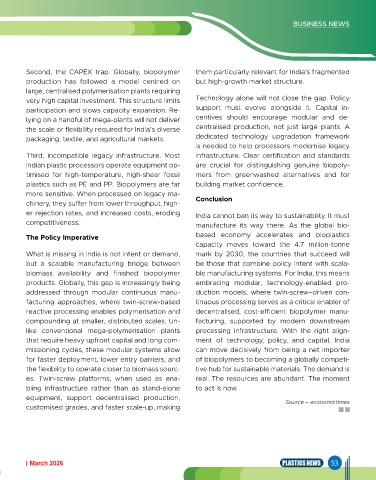 Second, the CAPEX trap. Globally, biopolymer them particularly relevant for India’s fragmented