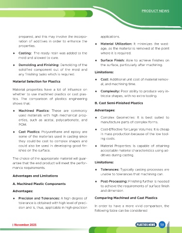 whether to use machined plastics or cast plas- tricate shapes, with no extra tooling.