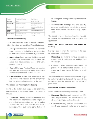 consideration in the production of cast plastics When in comparison of engineering plastics: