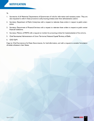 4. Secretary, Ministry of MSME with a request to monitor the procuring entities for implementation of the scheme.