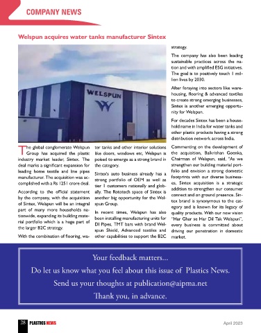 Do let us know what you feel about this issue of Plastics News.