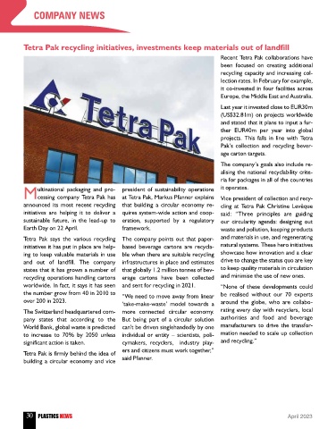 Mcessing company Tetra Pak has at Tetra Pak, Markus Pfanner explains Vice president of collection and recy-