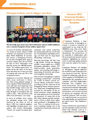 n terms of numbers, Chinaplas nev- carbonate with optical properties, TERPACK from May 4-10, 2023,