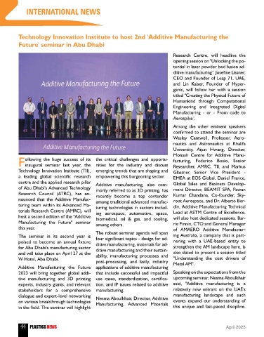 poised to become an annual fixture ditive manufacturing, materials for ad- nering with a UAE-based entity to