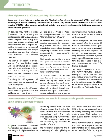 with nanostructured block copoly- components by enabling the develop- Lindner concluded.