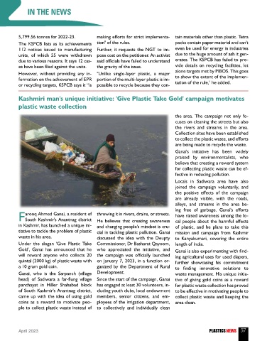 in Kashmir, has launched a unique ini- and changing people's mindset is cru- of plastic, and he plans to take this