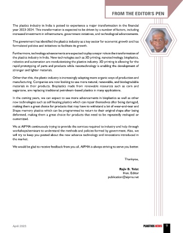 the plastics industry in India. New technologies such as 3D printing, nanotechnology, bioplastics,