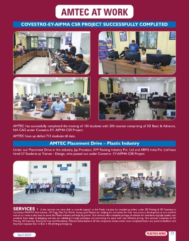 AMTEC has successfully completed the training of 100 students with 200 courses comprising of 3D Basic & Advance,