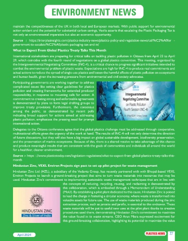 (MoU). By establishing a pilot plant dedicated to this cause, Hindustan Zinc is poised