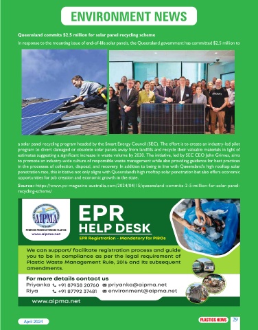 a solar panel recycling program headed by the Smart Energy Council (SEC). The effort is to create an industry-led pilot