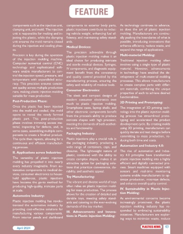 Plastic injection molding has revolu- ards and catering to the ever-evolving increasingly prominent, the plastic