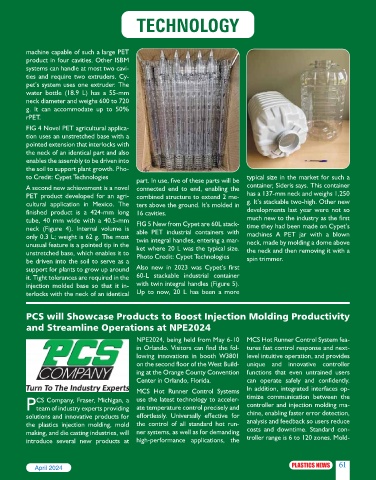 PET product developed for an agri- combined structure to extend 2 me- has a 137-mm neck and weighs 1,250
