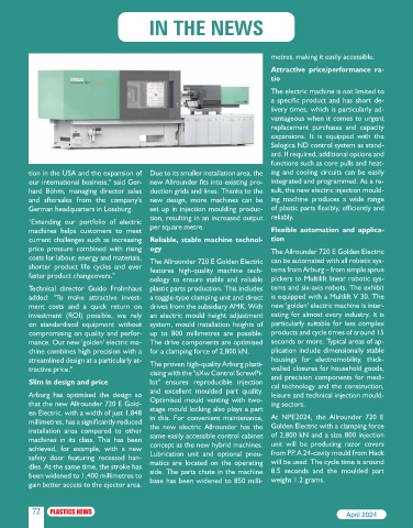 shorter product life cycles and ever features high-quality machine tech- tems from Arburg – from simple sprue