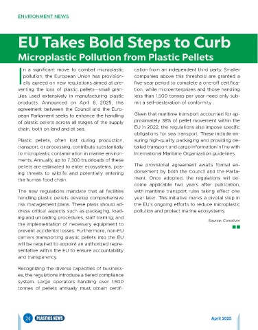 pellets are estimated to enter ecosystems, pos- The provisional agreement awaits formal en-