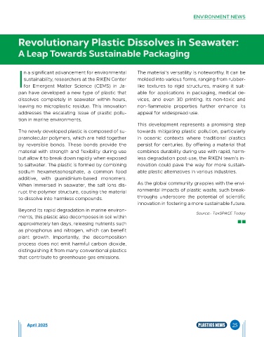 Beyond its rapid degradation in marine environ- Source:- TexSPACE Today
