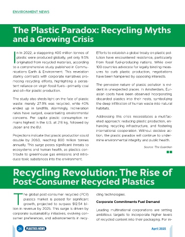 Projections indicate that plastic production could tion, the plastic paradox will continue to under-