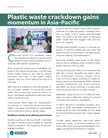 Several countries in the Asia-Pacific have taken Though Japan generates significant plastic