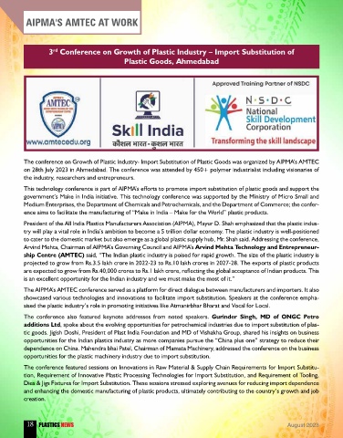The conference on Growth of Plastic Industry- Import Substitution of Plastic Goods was organized by AIPMA’s AMTEC