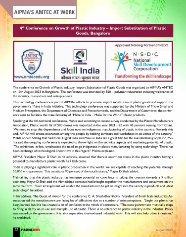The conference on Growth of Plastic Industry- Import Substitution of Plastic Goods was organized by AIPMA’s AMTEC