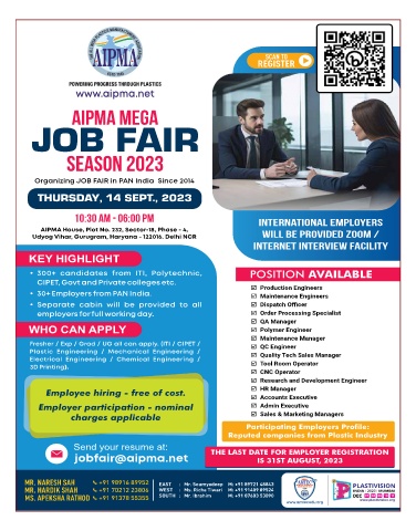 jobfair@aipma.net THE LAST DATE FOR EMPLOYER REGISTRATION