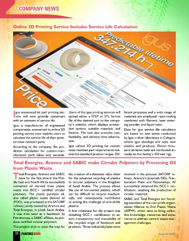 gus announced its part printing ser- Users of the Igus printing services will ferent processes and a wide range of