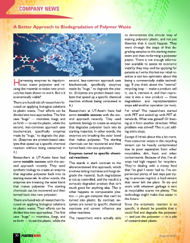 Herize waste polyester and re- biochemicals, specifically enzymes ogy. If you think about the “normal”