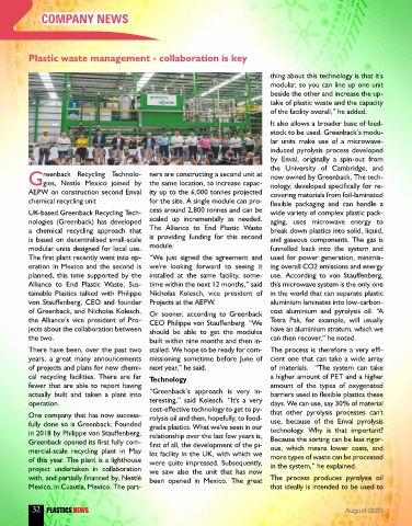 chemical recycling unit for the site. A single module can pro- flexible packaging and can handle a