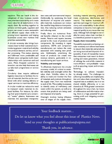 A circular economy also brings busi- components. By investing in repair Traceability is pivotal to achieving a cir-