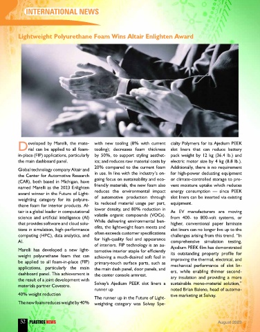 thane foam for interior products. Al- its reduced material usage per part, equipment.