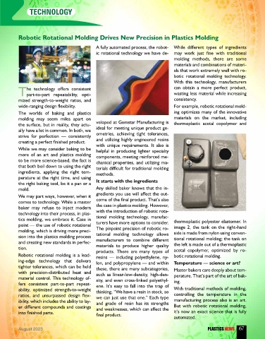 Robotic rotational molding is a lead- resins — including polyethylene, ny- botic rotational molding.