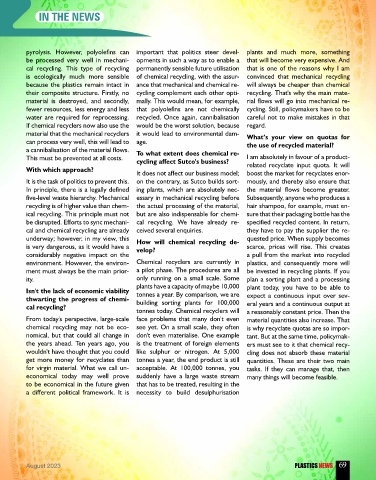 chemical recycling may not be eco- see yet. On a small scale, they often is why recyclate quotas are so impor-
