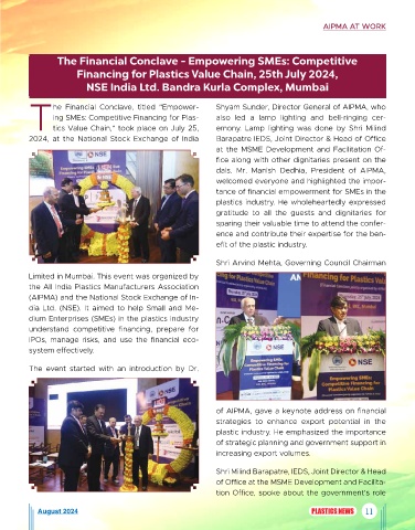 he Financial Conclave, titled "Empower- Shyam Sunder, Director General of AIPMA, who