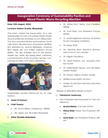 India Plastic Manufacturers Association (AIPMA) • Mr Sanjay Shah