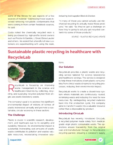 Rhealthcare industries by collecting, recy- RecycleLab works to create a closed-loop sys-