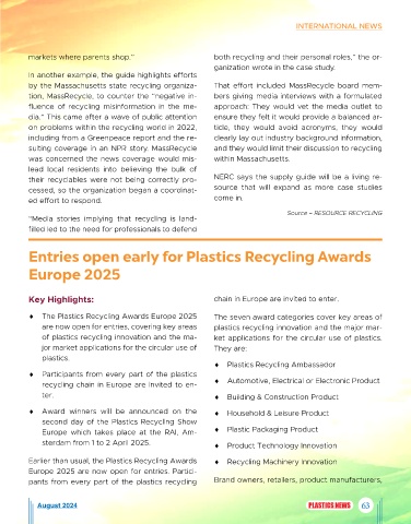 ♦ The Plastics Recycling Awards Europe 2025 The seven award categories cover key areas of
