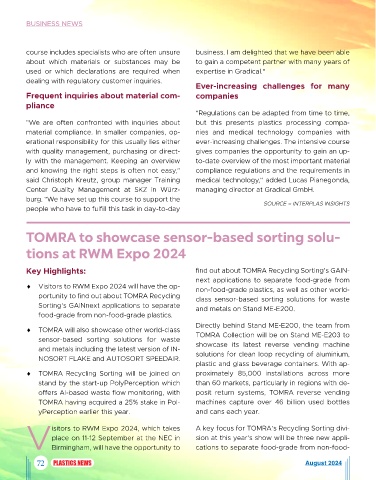 isitors to RWM Expo 2024, which takes A key focus for TOMRA’s Recycling Sorting divi-