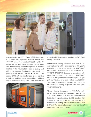 grade plastics for PET, PP and HDPE. GAINnext – the level EU regulation requires to fulfil food