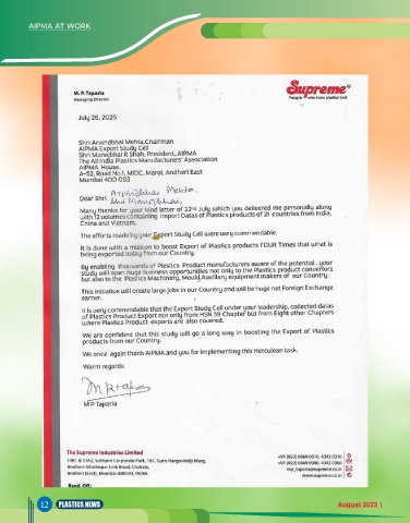 AIPMA AT WORK 12 PLASTICS NEWS August 2025